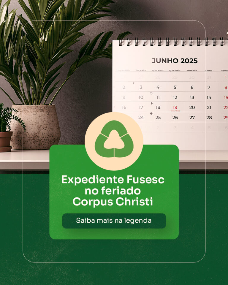 A Fusesc informa que na quinta-feira (19/06) não haverá expediente devido ao feriado de Corpus Christi. O expediente retorna na sexta-feira, dia 20/06, no horário normal de funcionamento, das 8