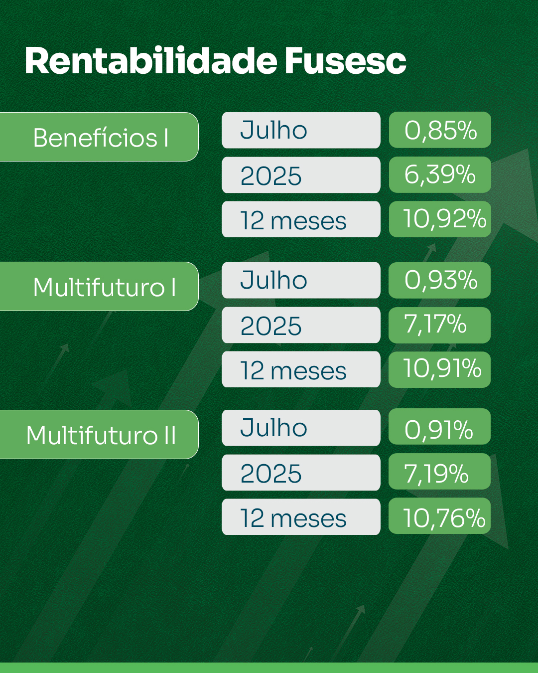 Além das Lâminas de Rentabilidade completas de cada Plano, você também pode conferir mensalmente no nosso podcast Fala Fusesc informações a respeito da rentabilidade dos planos, falando sobre os impactos do mercado financeiro no mês e, também, trazendo uma avaliação de forma mais ampla.