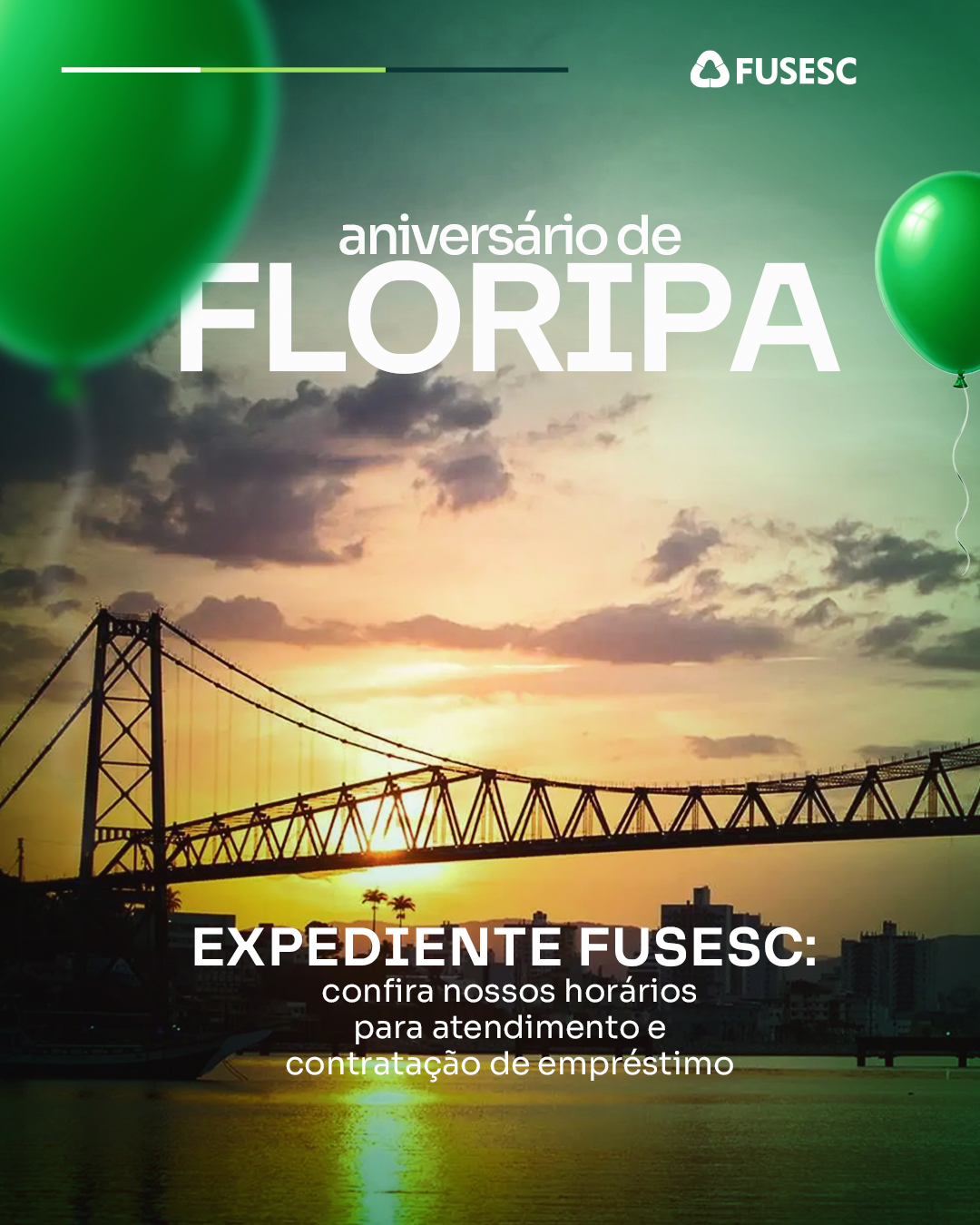 A Fusesc informa que no dia 23/03 (segunda-feira) não haverá expediente em razão do feriado de aniversário de Florianópolis.
