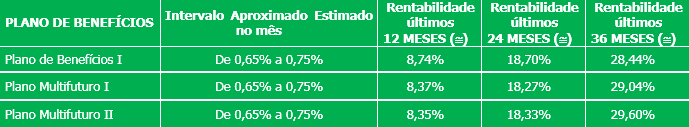 As diferentes rentabilidades entre os planos de benefícios advêm da composição das aplicações que cada um deles possui em carteira. A partir do dia 20 de agosto, já estará disponível para consulta a lâmina dos investimentos do seu plano de benefícios em www.fusesc.com.br, menu investimentos/rentabilidade e obtenha as informações de alocação por classe de ativos, rentabilidade acumulada e análise comparativa, cuja publicação ocorre mensalmente.
